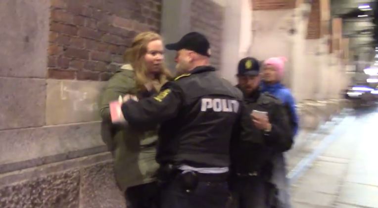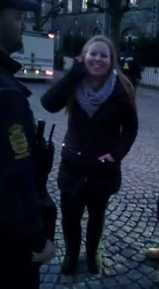 Nina synes betjenten tog for hårdt fat, da hun tegnede med kridt foran hovedbanegården i København. Nu klager hun og melder ham for vold